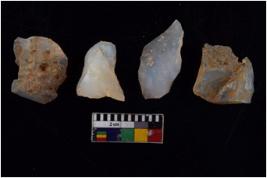 | Description / विवरण | There are n-4 of utilized Flakes . There are multidirectional irregular dominant scar pattern on both dorsal and ventral face of the cores. Some of them bulge of percussion and some are flat flake cores. |
