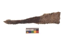 | Description / विवरण | Fragment of Agriculture tool. It has lenticular shape with rectangular cross section and pointed butt. It is under side flat and blunt edge |