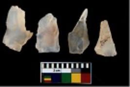 | Description / विवरण | There are n 4 utilized flake cores. There are multi directional irregular scar pattern on them. Three are tapering at one end and one has sharp edge. |