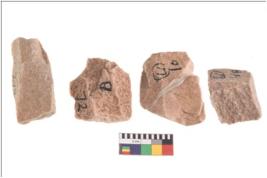 | Description / विवरण | There are n 4 cores. There are multi directional irregular scar pattern on both dorsal and ventral face of the cores. Some have blunted edges and some have round edges. |
