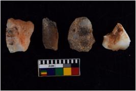 | Description / विवरण | There are n-4 of utilized cores. There are multidirectional irregular dominant scar pattern on both dorsal and ventral face of the cores. Some of them bulge of percussion and some are flat flake cores. |