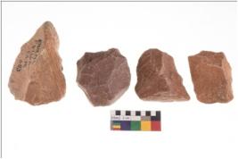 | Description / विवरण | There are n 4 cores. There are multi directional irregular scar pattern on both dorsal and ventral face of the cores. Some have blunted edges and some have round edges. |