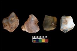 | Description / विवरण | There are n 4 utilized flake cores. There are multi directional irregular scar pattern on them. Two have flat base and two have blunted edges. |