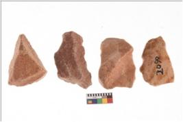 | Description / विवरण | There are n 4 cores. There are multi directional irregular scar pattern on both dorsal and ventral face of the cores. Some have blunted edges and some have round edges. |