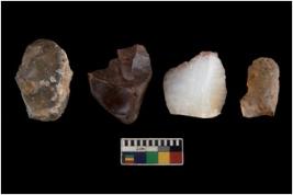 | Description / विवरण | There are n 4 utilized flake cores. Out of them one is made up of Chert and three are made up of Chalcedony. There are multi directional irregular scar pattern on them. Two have blunted edges and two have round edges. |