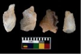 | Description / विवरण | There are n 4 utilized flake cores. There are multi directional irregular scar pattern on them. All of them are tapering at one end. |