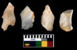 | Description / विवरण | There are n 4 utilized flake cores. There are multi directional irregular scar pattern on them. Two are tapering at one end and two have sharp edges. |