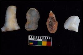 | Description / विवरण | There are n 4 flakes tool; there are large flakes with sides trimmed, Marks of secondary flaking are present on the both the faces. The dorsal is relatively flat. One is pointed functional top |