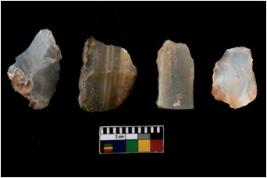 | Description / विवरण | There are n 4 utilized flake cores. There are multi directional irregular scar pattern on them. Three have flat base and one has blunted edge. |
