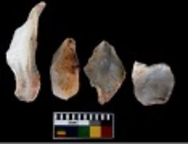 | Description / विवरण | There are n 4 utilized flake cores. There are multi directional irregular scar pattern on them. One is tapering at one end and three have blunted edges. |