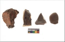 | Description / विवरण | Specimen of fluted cores having several broad fluted marks indicating the detached blades from it. |