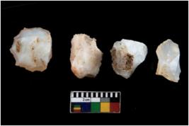 | Description / विवरण | There are n 4 utilized flake cores. There are multi directional irregular scar pattern on them. Two have blunted edges and two have round edges. |