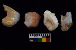 | Description / विवरण | There are n 4 flakes; there are multidirectional irregular scar pattern on them; made of short flakes and all four have blunted edges. |