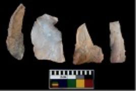 | Description / विवरण | There are n 4 utilized flake cores. There are multi directional irregular scar pattern on them. All of them are tapering at one end. |