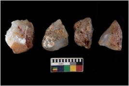 | Description / विवरण | There are n 4 utilized flake cores. There are multi directional irregular scar pattern on them. Two have flat base and two have blunted edges. |