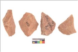 | Description / विवरण | There are n 4 cores. There are multi directional irregular scar pattern on both dorsal and ventral face of the cores. Some have blunted edges and some have round edges. |