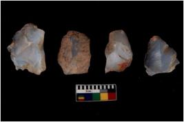 | Description / विवरण | There are n 4 of utilized worked cores. They show multidirectional irregular scar pattern while two are elongated in shape. |
