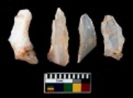| Description / विवरण | There are n 4 utilized flake cores. There are multi directional irregular scar pattern on them. Three are tapering at one end and one has sharp edge. |