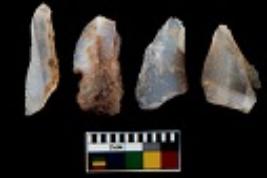 | Description / विवरण | There are n 4 utilized flake cores. There are multi directional irregular scar pattern on them. All of them are tapering at one end. |