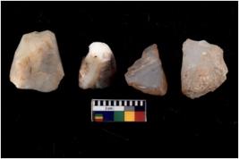 | Description / विवरण | There are n 4 cores; there are multidirectional irregular scar pattern on them. The flake scars are seen on all sides. |
