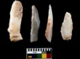 | Description / विवरण | There are n 4 utilized flake cores. There are multi directional irregular scar pattern on them. Two are tapering at one end and two have sharp edges. |
