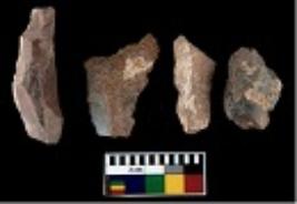 | Description / विवरण | There are n 4 utilized flake cores. There are multi directional irregular scar pattern on them. All of them are tapering at one end. |