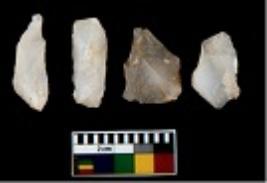 | Description / विवरण | There are n 4 utilized flake cores. There are multi directional irregular scar pattern on them. All of them are tapering at one end. |