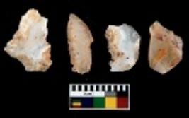 | Description / विवरण | There are n 4 utilized flake cores. There are multi directional irregular scar pattern on them. Two are tapering at one end and two have sharp edges. |