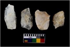 | Description / विवरण | There are n 4 utilized flake cores. Two are tapering at one end and two have blunted edges. |