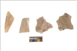 | Description / विवरण | There are n 4 flakes tool; there are large flakes with sides trimmed, Marks of secondary flaking are present on the both the faces. The dorsal is relatively flat. |