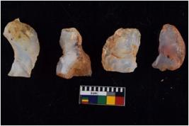 | Description / विवरण | There are n 4 flakes tool; there are multidirectional irregular scar pattern on them; made of short flakes and all four have tapering edges. |