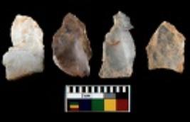 | Description / विवरण | There are n 4 utilized flake cores. Out of them one is made up of Chert and three are made up of Chalcedony. There are multi directional irregular scar pattern on them. Three are tapering at one end and one has blunted edge. |