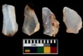| Description / विवरण | There are n 4 utilized flake cores. There are multi directional irregular scar pattern on them. Three are tapering at one end and one has sharp edge. |