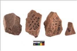 | Description / विवरण | Specimen of flake tools with prominent flaking marks. They are made up of a short flakes with sides trimmed. |