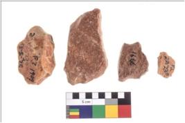 | Description / विवरण | Specimen of flake tools with prominent flaking marks. They are made up of a short flakes with sides trimmed. |