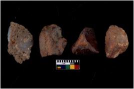 | Description / विवरण | There are n 4 of utilized worked cores and show multidirectional irregular scar pattern. Three are tapering at one end. |