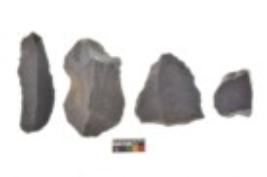 | Description / विवरण | There are n 4 utilized flake cores. There are multi directional irregular scar pattern on both dorsal and ventral face of the flake cores. Two are tapering at one end and two have blunted edges. |