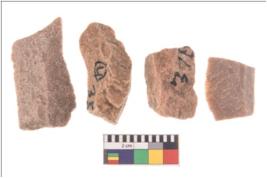 | Description / विवरण | Specimen of flake tools with prominent flaking marks. They are made up of a short flakes with sides trimmed. |