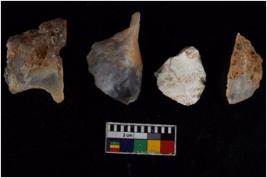 | Description / विवरण | There are n 4 flakes tool; there are large flakes with sides trimmed, Marks of secondary flaking are present on the both the faces. The dorsal is relatively flat |