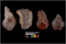 | Description / विवरण | There are n 4 of utilized worked cores and show multidirectional irregular scar pattern. Three have a broken tip while one has a flat base. |