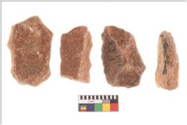 | Description / विवरण | Specimen of flake tools with prominent flaking marks. They are made up of a short flakes with sides trimmed. |