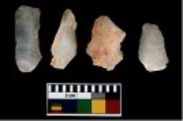 | Description / विवरण | There are n 4 utilized flake cores. There are multi directional irregular scar pattern on them. All of them are tapering at one end. |
