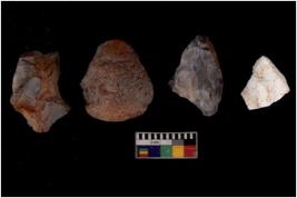 | Description / विवरण | There are n 4 of utilized worked cores and show multidirectional irregular scar pattern. |