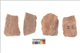 | Description / विवरण | Specimen of flake tools with prominent flaking marks. They are made up of a short flakes with sides trimmed. |