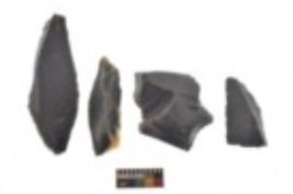| Description / विवरण | There are n 4 utilized flake cores. There are multi directional irregular scar pattern on both dorsal and ventral face of the flake cores. One is tapering at one end and three have blunted edges. |