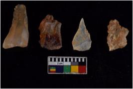 | Description / विवरण | There are n 4 flakes tool; there are large flakes with sides trimmed, Marks of secondary flaking are present on the both the faces. The dorsal is relatively flat. |