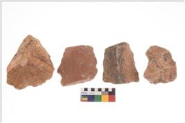| Description / विवरण | Specimen of flake tools with prominent flaking marks. They are made up of a short flakes with sides trimmed. |