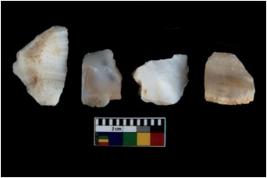 | Description / विवरण | Specimen of fluted cores having several broad fluted marks indicating the detached blades from it. |