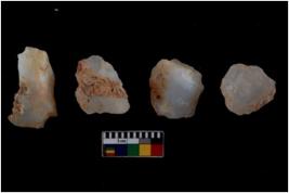| Description / विवरण | Specimen of flake tools with prominent flaking marks. They are made up of a short flakes with sides trimmed. |