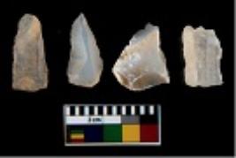 | Description / विवरण | There are n 4 utilized flake cores. There are multi directional irregular scar pattern on them. Three are tapering at one end and one has sharp edge. |